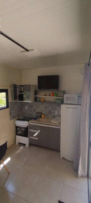 | Lindo espaco em uma estrutura moderna ecologicamente correto com 1 quarto, 01 banheiro, cozinha e sala conjugados, móveis todos novos com utensilios basico de cozinha, ar condicionado no dormitório. Possui sofa cama. Acomoda casal com filho Venha conhecer e ter uma experiencia incrivel neste espaco. Espaco para churrasco compartilhado com mais um imovel do mesmo estilo. Fornece roupa de cama e toalhas de banho. | ||